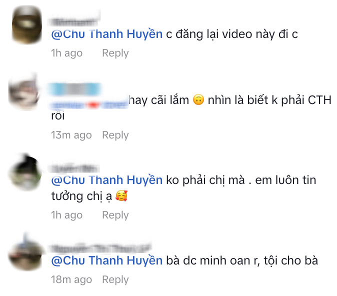 Trả lời bình luận của dân mạng, cô gái này than thở: "Tự nhiên cái clip hát chơi chơi cái bị đem lên chạy quảng cáo tối ngày giờ thành Chu Thanh Huyền chả hiểu sao luôn", "Mình bị ảnh hưởng lắm bạn ơi nên mình muốn tốt cho mình và chị Huyền". Cô nàng cũng khẳng định đã đi giải thích mỏi tay mà dân mạng không tin.