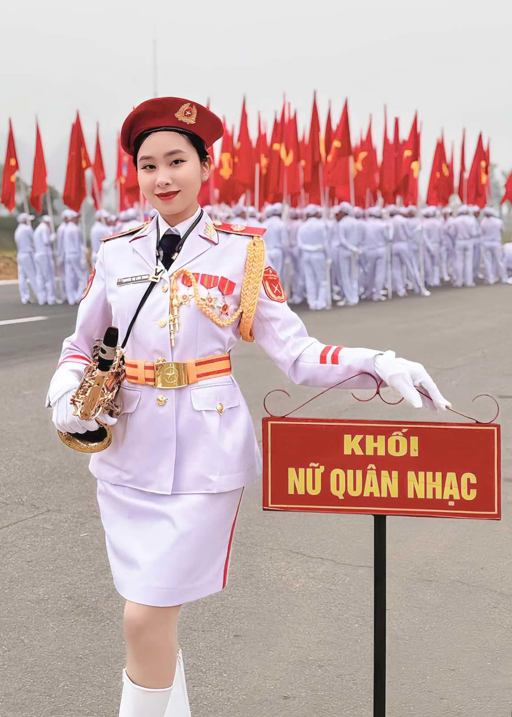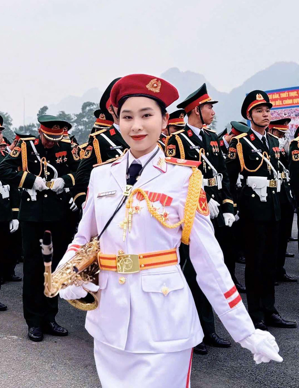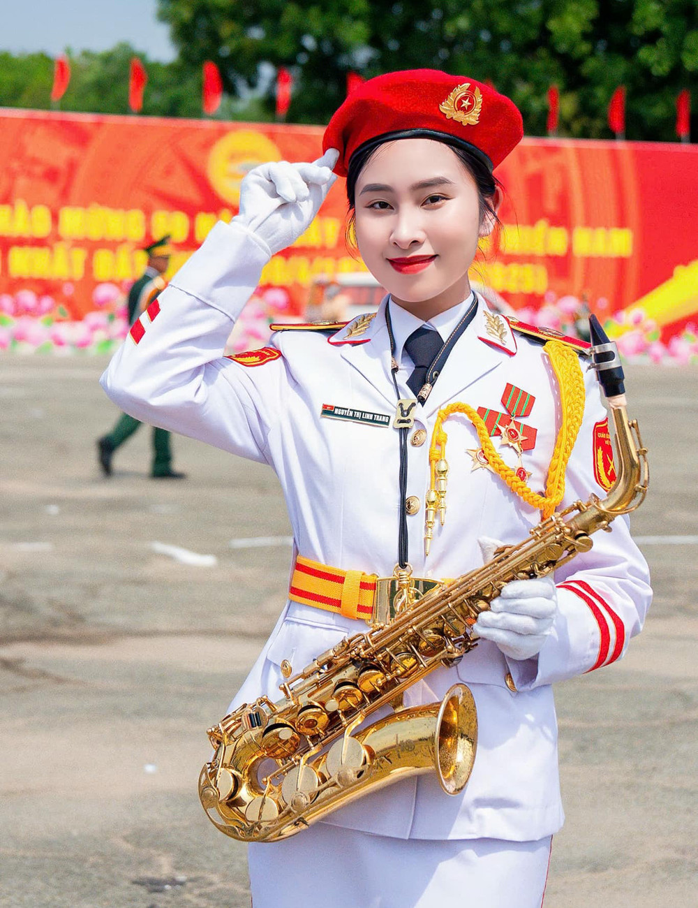 Nguyễn Thị Linh Trang (SN 2001, Hà Nội) là một trong 122 đồng chí thuộc khối nữ Quân nhạc. Hình ảnh cô gái Hà Nội mặc quân phục, tay ôm chiếc kèn lớn, hăng say luyện tập trên thao trường được dân mạng chia sẻ rộng rãi.