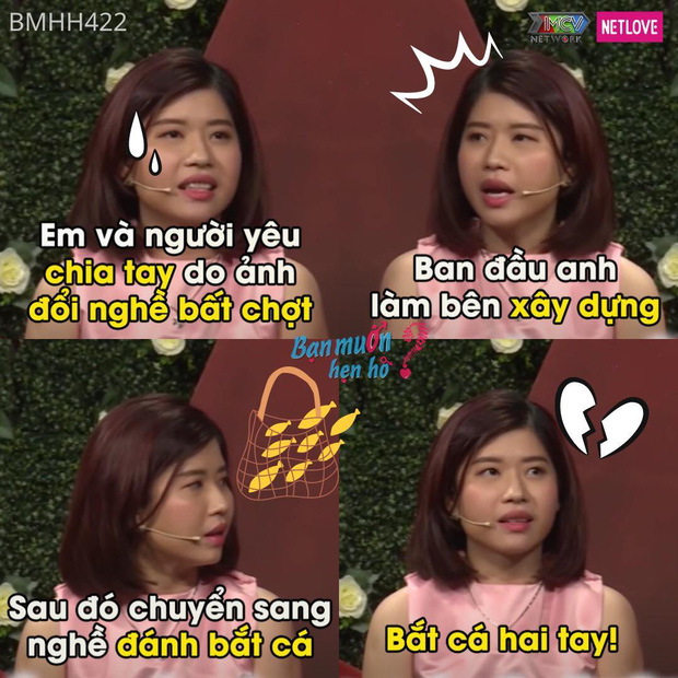 Một điều trùng hợp là bạn nam tham gia cùng chương trình cũng có trải nghiệm tương tự, anh chàng phát hiện bạn gái bắt cá hai tay. Ngay sau khi nghe câu chuyện của đôi trẻ xong, bộ đôi MC Quyền Linh - Cát Tường lập tức gửi lời khuyên nếu có bấm nút thì cả hai hứa với nhau là không được đổi nghề. May mắn là cuối chương trình, cả hai người cũng đồng ý hẹn hò với nhau.