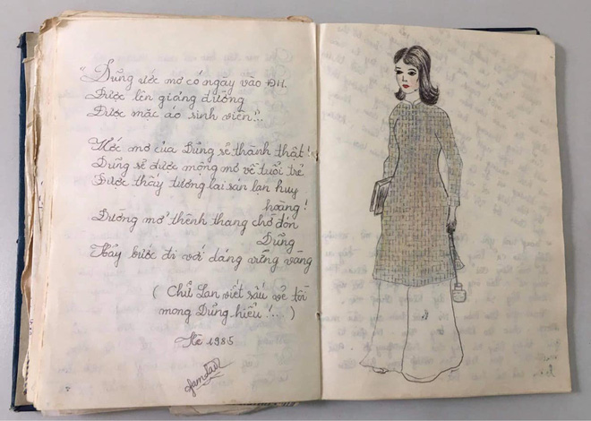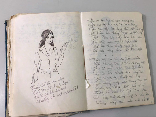 Đính kèm hình ảnh của mẹ, Khánh Linh còn đăng thêm quyển nhật ký - kỷ vật duy nhất mẹ cô còn giữ được cho tới bây giờ càng khiến dân mạng thêm trầm trồ. Hóa ra, không chỉ nhan sắc tuyệt đỉnh, mẹ Khánh Linh còn viết chữ rất đẹp và có tài làm thơ. Bất ngờ hơn, mẹ Khánh Linh lại là học sinh chuyên Toán trường THPT Việt Trì (Phú Thọ) chứ không phải dân Văn.