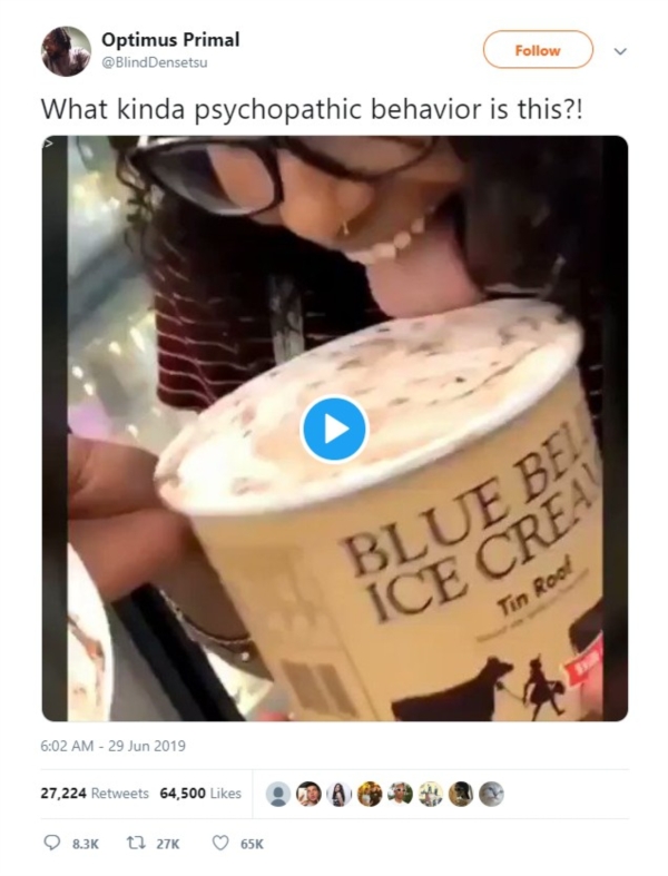 Hiện tại, đoạn clip đã nhận được hơn 10 triệu lượt xem, hơn 64 nghìn lượt thích và hơn 27 nghìn lượt bình luận trên Twitter. Hiện tại, hãng kem đã vào cuộc để xác định danh tính của người phụ nữ kia, đồng thời khẳng định những hành động ghê tởm thế kia sẽ không bao giờ được dung thứ.