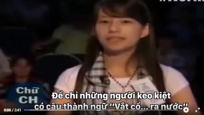 Cụ thể, khi MC Quang Minh của chương trình đưa ra câu hỏi “Để chỉ những người keo kiệt, có câu thành ngữ Vắt cổ gì thì ra nước?", một cô gái đã trả lời rất nhanh là "Vắt cổ chim ra nước" khiến trường quay rộ tiếng cười.