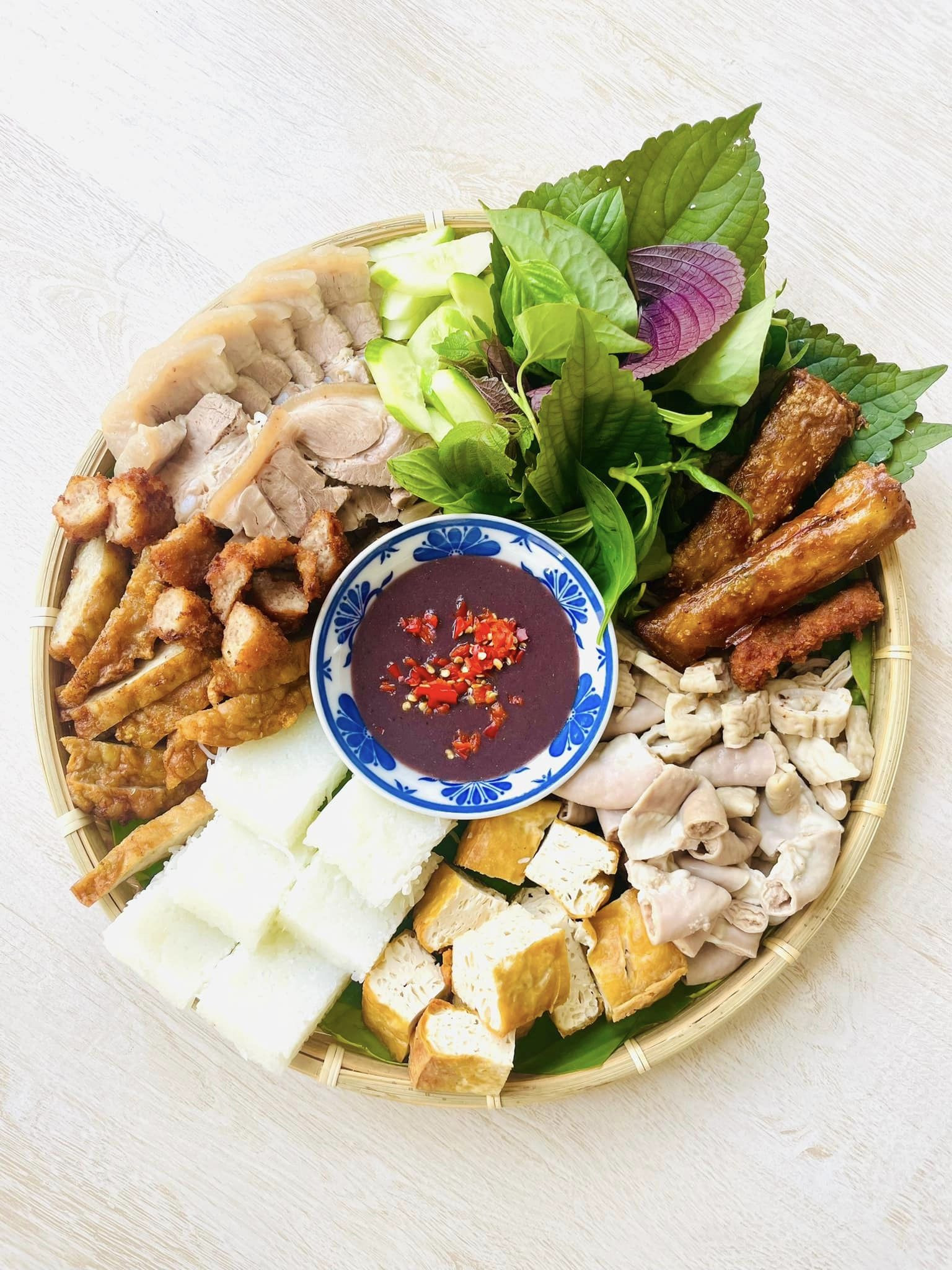 Mẹt bún đậu mắm tôm Trang tự nấu với 80% nguyên liệu xách tay từ Việt Nam, từ lòng lợn tới rau diếp cá, bún tự ép từ đêm hôm trước. Cô còn cầu kì "lùng sục" được chiếc mẹt và lá chuối để trình bày cho "chuẩn Việt"