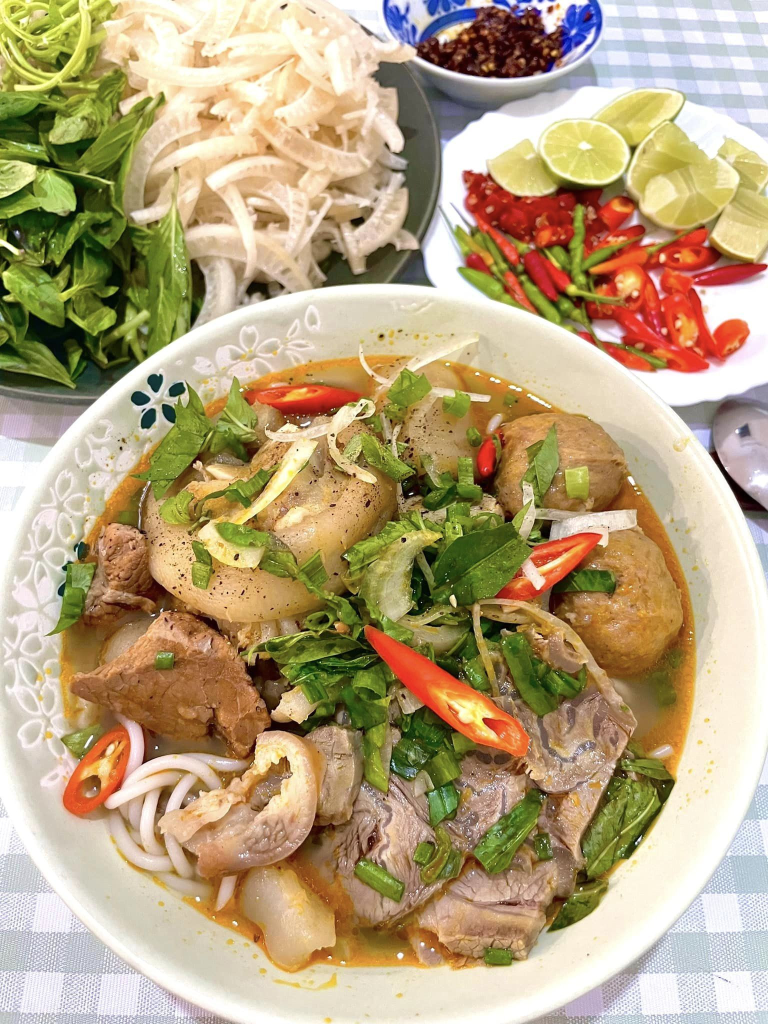 “Lúc đó, tôi còn ở nhà tập thể. Bếp điện chỉ có 1 cái, cũng không có nồi to, khó khăn đủ đường nhưng tôi vẫn ráng nấu được một nồi bún bò để chia cho mọi người trong nhà ăn cùng. Tô bún bò đầu tiên chẳng được đầy đủ nhưng nó ngon dễ sợ” – Trang chia sẻ.
