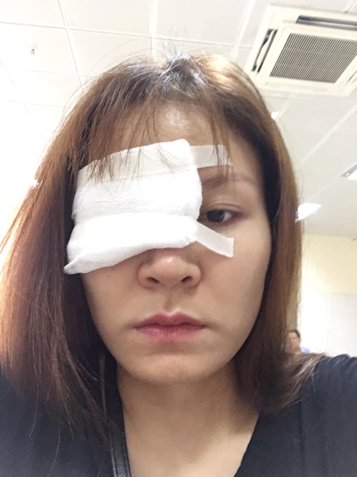 "Sau một hồi cũng tách được và tao phi ngay đến bệnh viện gần nhất để cấp cứu vì cả mảng keo bao trùm vào mắt tao khiến mắt phải mờ đục. Vào viện, tao được tức tốc đưa ngay lên khoa mắt cấp cứu. Bác sĩ nhìn tao ái ngại và phán: "Nguyên cả cái mặt không bắn vào mà bắn trọn cả đống keo vào mắt thế này có chết không cơ chứ" rồi bác còn cẩn thận chụp lại tình trạng mắt tao bảo để sau này cho tao nhìn lại.", cô chia sẻ.