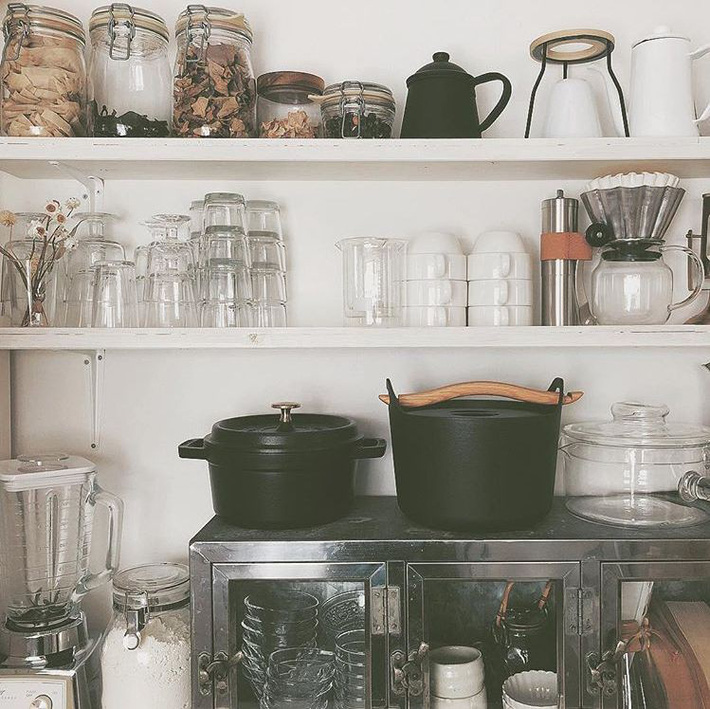 Ngoài nấu ăn, Mako còn có sở thích dọn dẹp. Góc bếp được cô thiết kế thêm kệ để đặt được vô số đồ dùng, vật dụng gọn gàng.