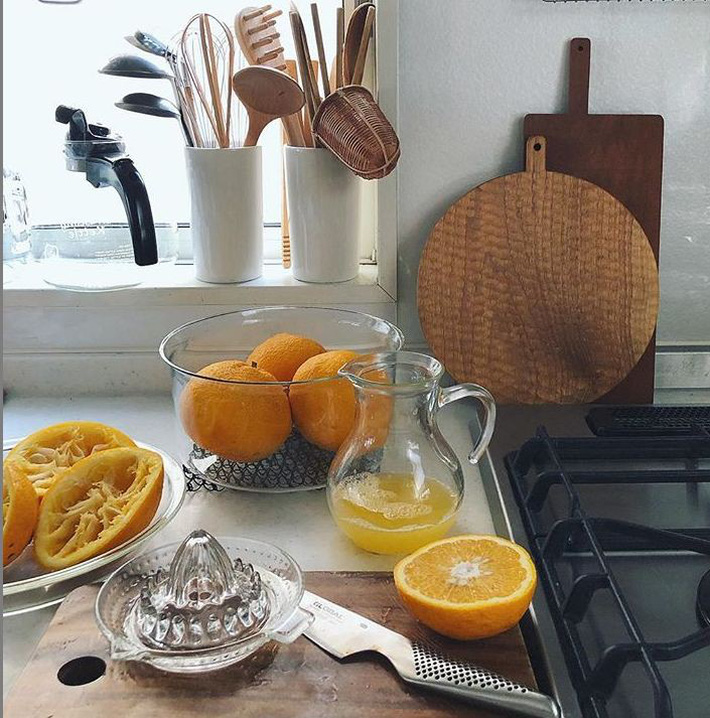 Vào mỗi dịp cuối tuần, cô sẵn sàng nấu những bữa trưa thật ngon để đảm bảo cho sức khỏe. Căn bếp là nơi được cô gái yêu thích. Vì thế, ngoài việc mua sắm các thiết bị cần thiết, cô gái chú trọng hơn trong việc mua đồ trang trí và decor khéo léo cho bàn ăn, mặt bàn bếp và những bức tường. Khu bếp cũng vì thế trở nên đáng yêu hơn, tạo thêm nhiều cảm hứng để cô gái nấu nhiều món ngon.