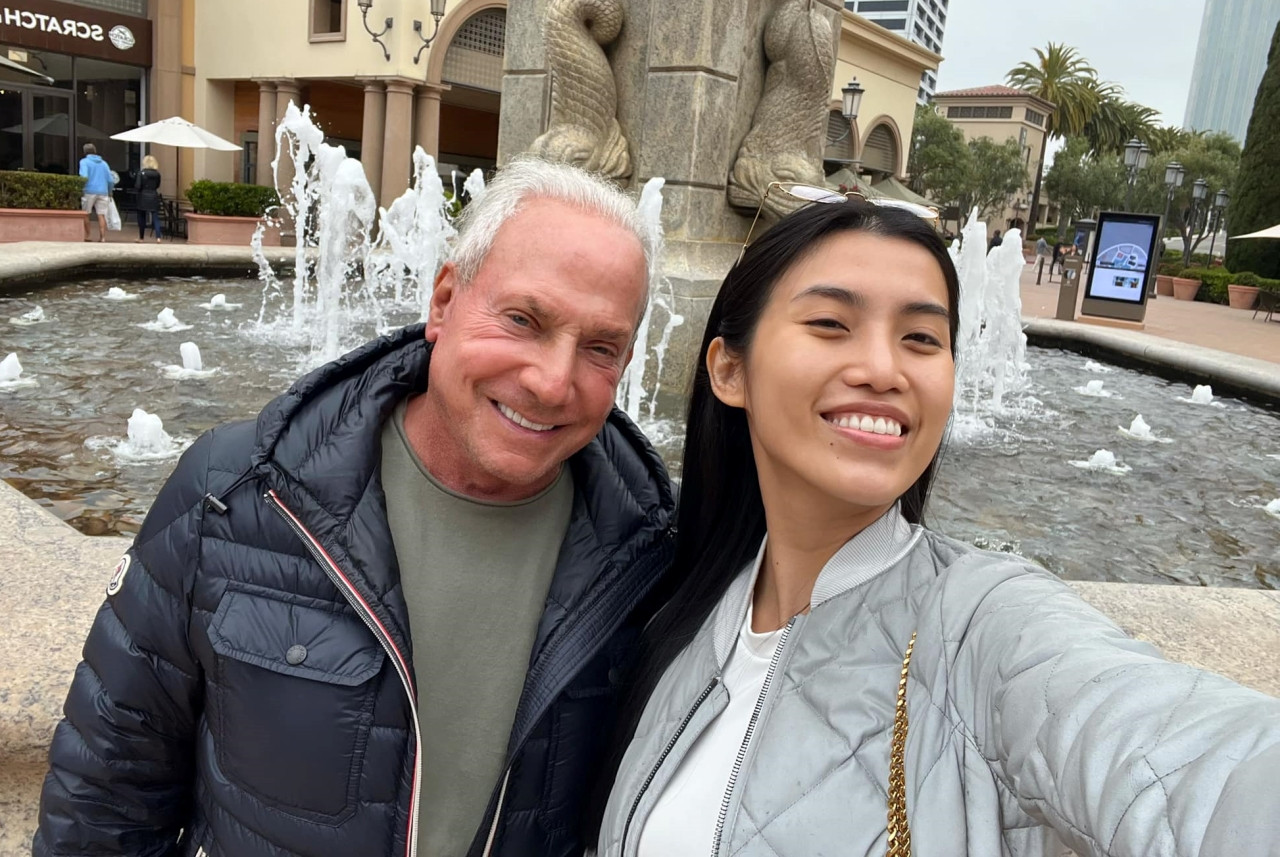 Trong tiết trời ấm áp của California (Mỹ), Cổ Ngân (29 tuổi, TP.HCM) hạnh phúc dạo phố, đến những thiên đường mua sắm cùng người yêu hơn tuổi Wynn Katz (75 tuổi, CEO của một hãng thời trang ở Los Angeles, Mỹ).