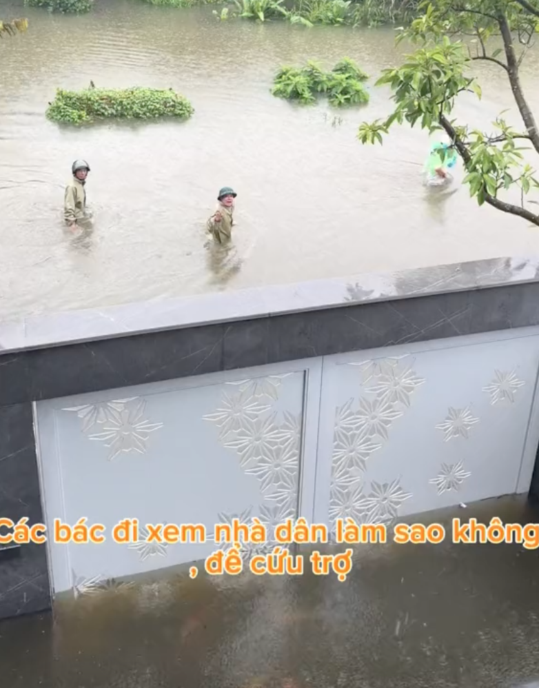 Ở đầu clip, có 3 người đàn ông đang mặc áo mưa lội giữa dòng nước lũ. Thông qua cuộc nói chuyện với cô gái trong clip, thì ra đó là những bác lãnh đạo tại một địa phương thuộc tỉnh Thái Nguyên đang đi xem xét, kiểm tra và giúp đỡ người dân. Các bác đã hỏi thăm tình hình mọi người để xem có cần giúp đỡ gì không.