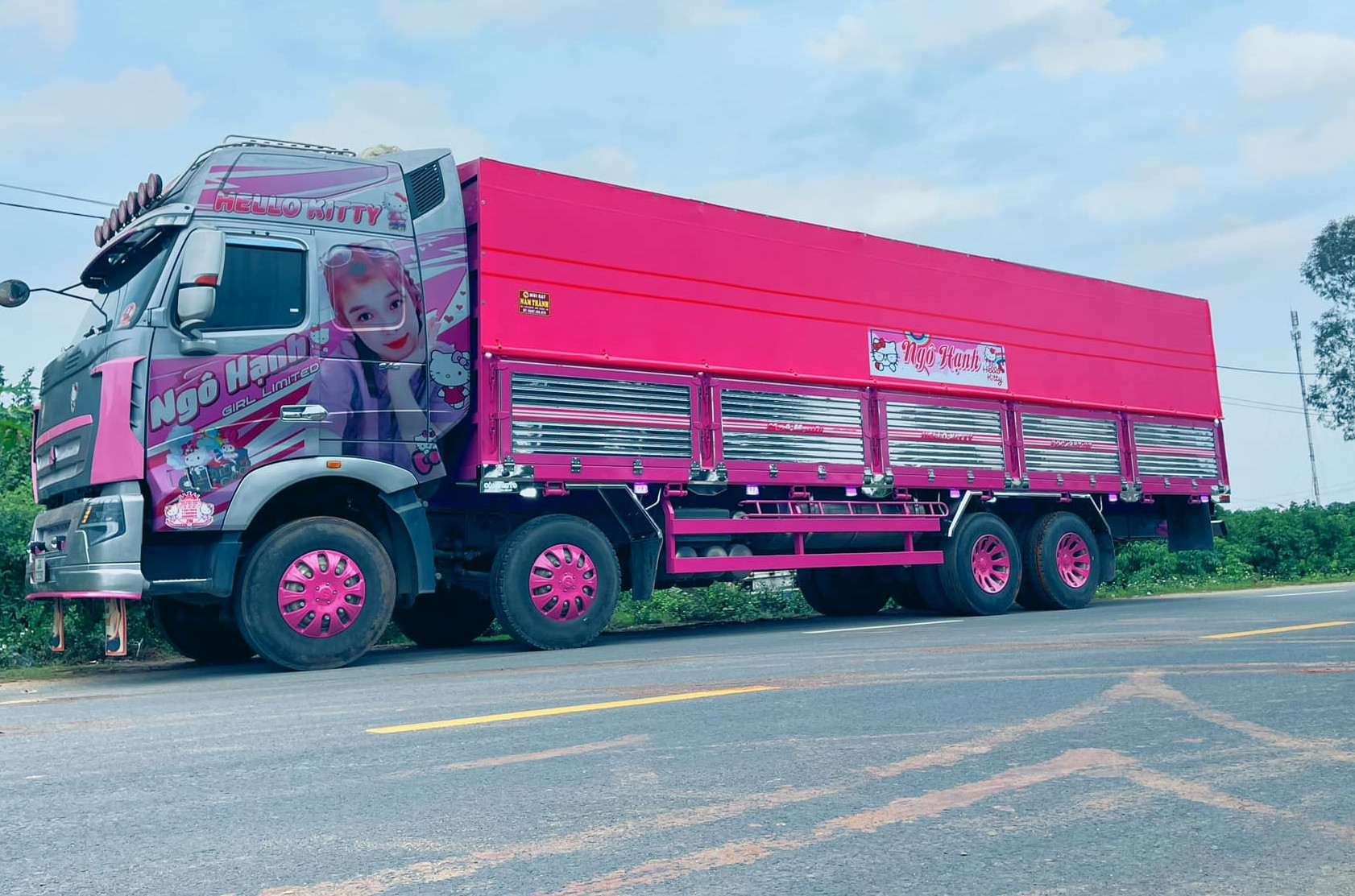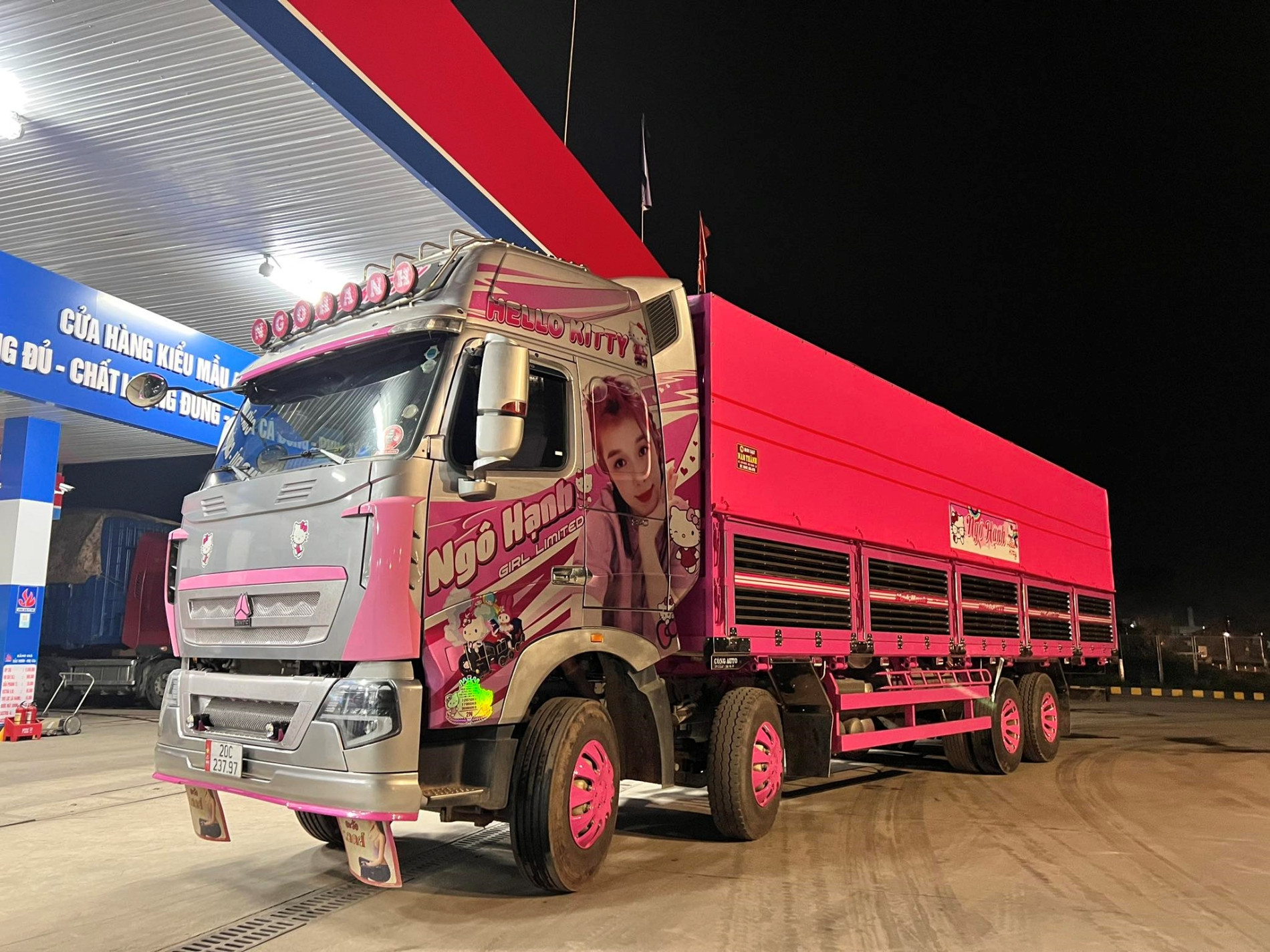 Năm 21 tuổi, có giấy phép lái xe hạng C, Mỹ Hạnh được bố mẹ đầu tư cho một chiếc xe tải 30 tấn. Cô quyết định phủ màu hồng và dán hình mèo Hello Kitty, ảnh chân dung của mình lên toàn bộ thân xe.