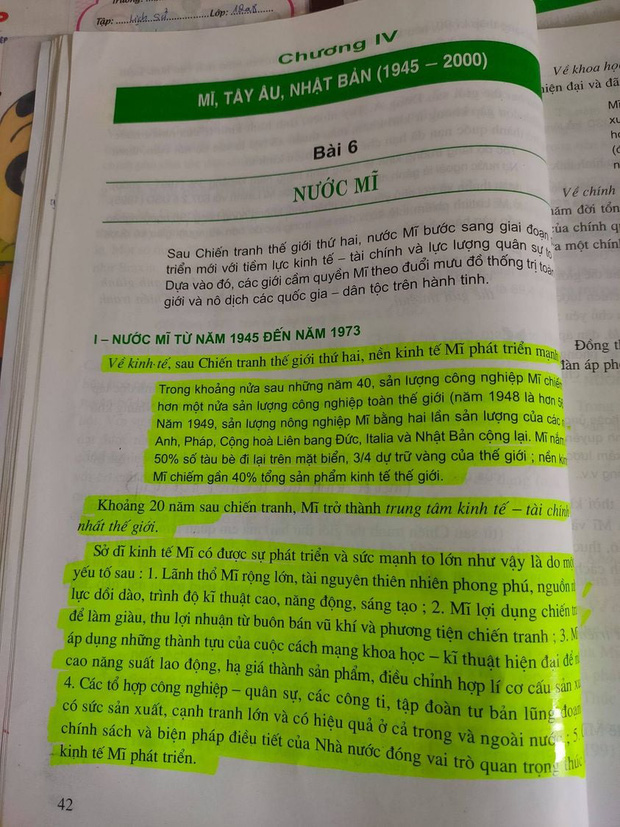Điển hình như trong trang sách giáo khoa của nam sinh kia có câu: "Khoảng 20 năm sau chiến tranh, Mỹ trở thành trung tâm kinh tế - tài chính lớn nhất thế giới". Thay vì hightlight tất, nam sinh chỉ cần bôi đậm chỗ: "Trung tâm kinh tế - tài chính lớn nhất thế giới" là đủ tóm tắt nội dung rồi.