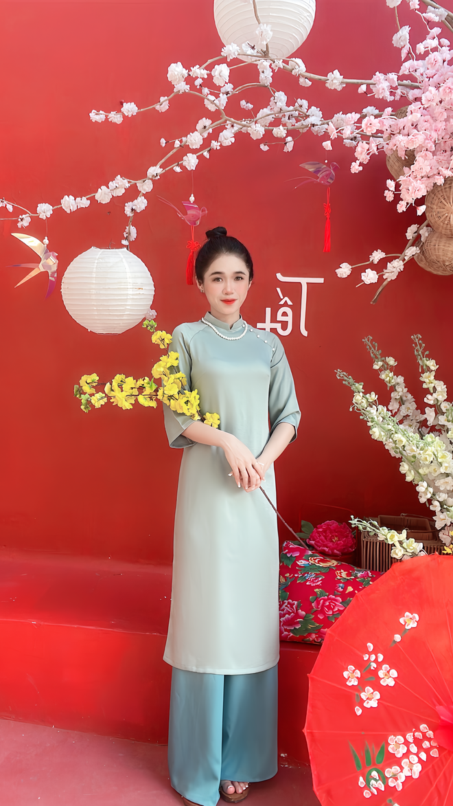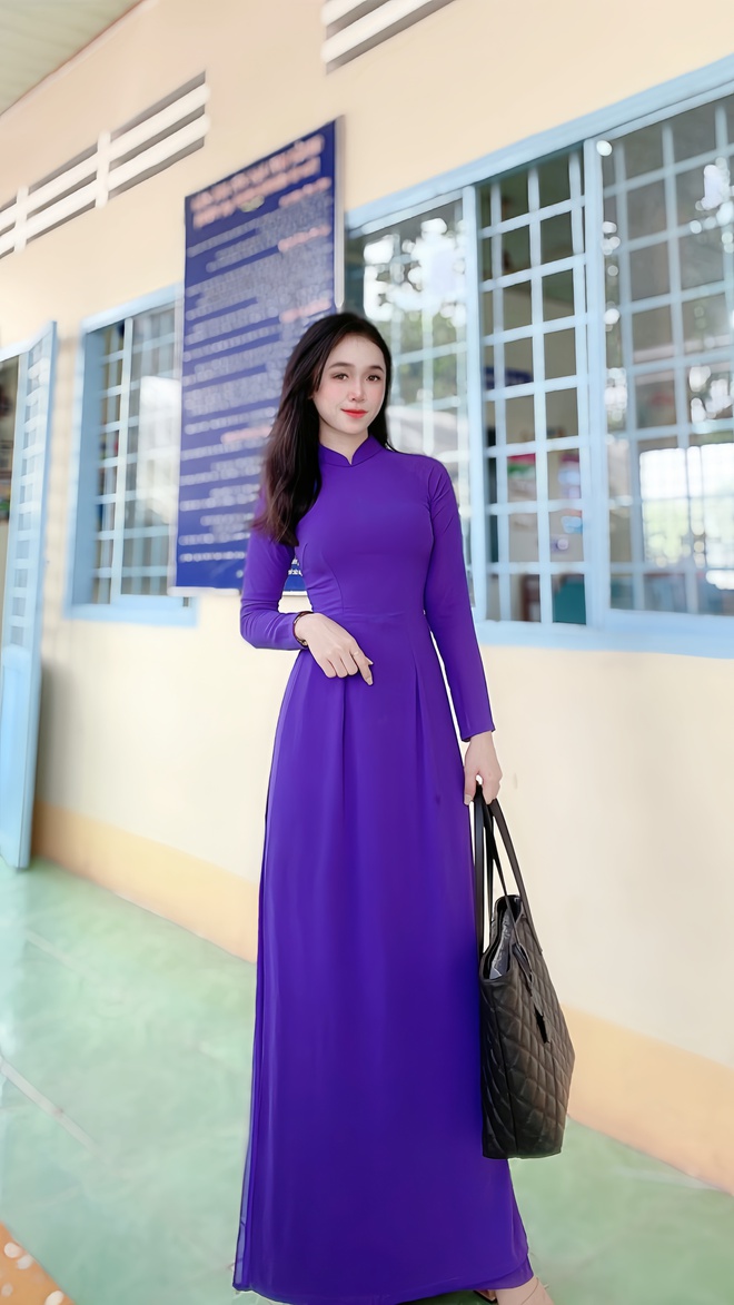 - Đối với áo dài truyền thống chị em nên chọn áo màu trơn , có thể tham khảo mẫu 4 tà chất chiffon vì chất này mềm, mặc thoải mái mà tôn dáng cực kì. Bạn nào tròn người lựa những tone trầm mặc lên gọn dáng lắm.