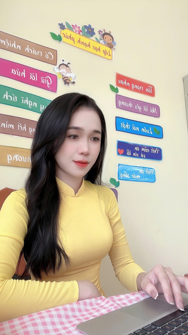 Cô giáo chúng ta đang nhắc đến ở đây có tên là Huyền Trang (SN1998), hiện đang công tác tại một trường tiểu học tại Đồng Tháp. Với gương mặt xinh đẹp, dáng người cao ráo và quan trọng nhất là style đi dạy "10 điểm không có nhưng", cô giáo Gen Z này đã hút một lượng follow không nhỏ. Ai nấy đều tỏ ra thích thú mỗi khi xem các clip cùng hình ảnh khoe outfit lên lớp của Huyền Trang, bởi lắm khi thấy cô đi dạy cả tháng còn chẳng trùng bộ nào. Trong số đó, bộ sưu tập áo dài của cô là ấn tượng nhất.