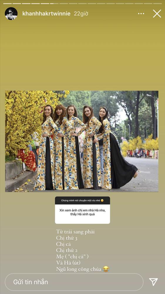 Người đăng tấm hình này lên là Khánh Hà – tiểu thư Sài Gòn kiêm bạn gái cũ của thiếu gia Phan Hoàng (em trai Phan Thành). Cô nàng tiết lộ nhà mình có 4 chị em gái và đều rất xinh đẹp. Tuy nhiên, mọi sự chú ý đều đổ dồn vào người mẹ, bởi cô cũng mặc chiếc áo dài cùng họa tiết và quá trẻ nên là bị lẫn hẳn với những người con của mình.
