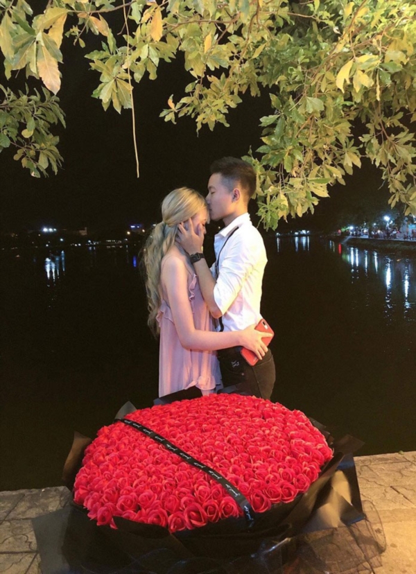 Chia sẻ về bó hoa có đến tới 365 bông hồng, anh Mạnh cho biết, nó tượng trưng cho số ngày trong năm. Mạnh mong rằng chuyện tình của mình ngày nào cũng ngọt ngào và lãng mạn giống như những bông hoa hồng đỏ thắm này.