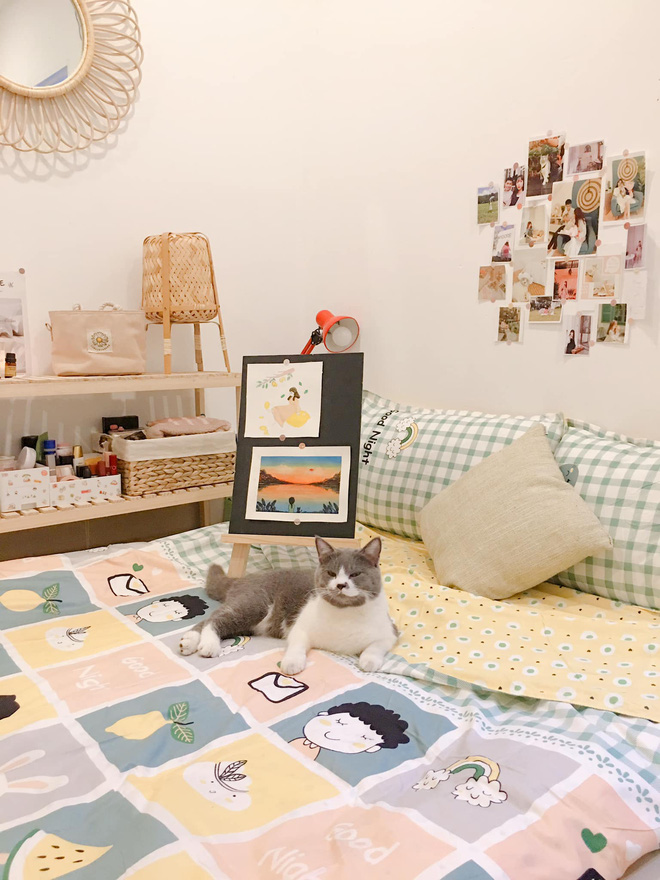 "Hiện tại căn phòng vẫn chưa đúng ý mình 100% nhưng F5 lại là cảm thấy thoải mái, vui vẻ rõ rệt. Vì với mình, một không gian sống thoải mái sẽ mang lại nguồn năng lượng tích cực cho chính mình. Hơn nữa, nhờ có chiếc phòng mới xinh xắn này mà mình và bé mèo tha hồ sống ảo". - Mỹ Duyên chia sẻ thêm.