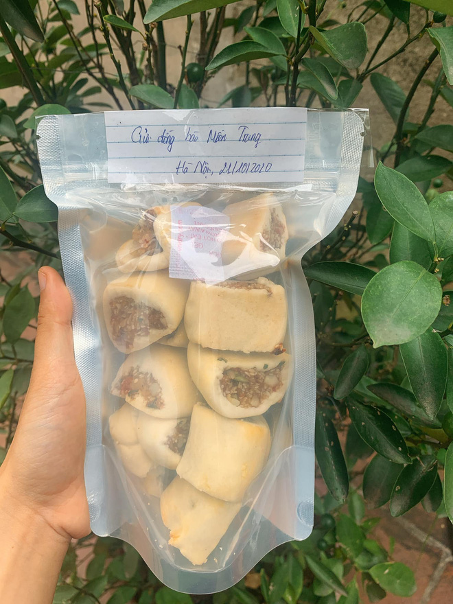 "Em mới hoàn thành xong 20kg bánh chả ủng hộ đồng bào miền Trung ạ. Em là sinh viên, tiền không có nhiều chứ sức thì em dư.