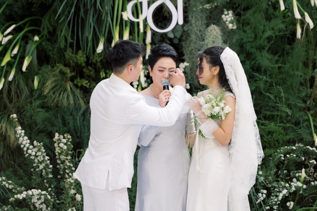 Trước đó, trong đám cưới tiễn con gái về nhà chồng, cô Văn Thuỳ Dương cũng nhiều lần ôm con gái và rơi nước mắt. Về Tô Sa, cô nàng cũng chuẩn bị cho mẹ một chiếc khăn tay đặc biệt, thêu dòng chữ: "Mẹ yên tâm, đừng khóc nhé! Con tìm được hạnh phúc của riêng mình rồi ạ!".