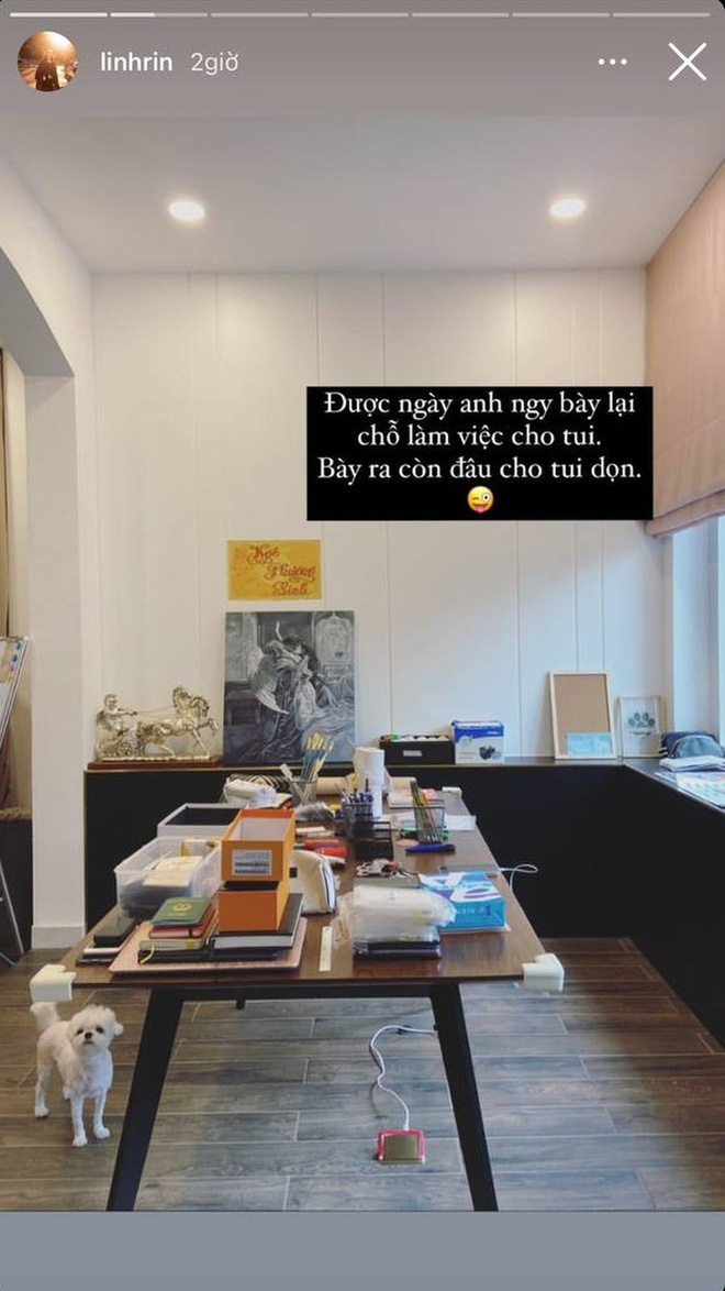 Đây cũng không phải lần đầu tiên Linh Rin hào hứng đăng tải những hành động ngọt ngào của bạn trai. Gần đây nhất, Phillip Nguyễn còn dành cả một ngày rảnh rỗi hiếm hoi để tận tay dọn dẹp lại bàn làm việc cho bạn gái. Nào là chu đáo bọc hết các cạnh bàn nhọn để không làm người yêu bị thương, bọc nốt cả nắp ổ điện bằng keo cách điện rồi lại sắp xếp đồ đạc trên bàn đâu ra đó.