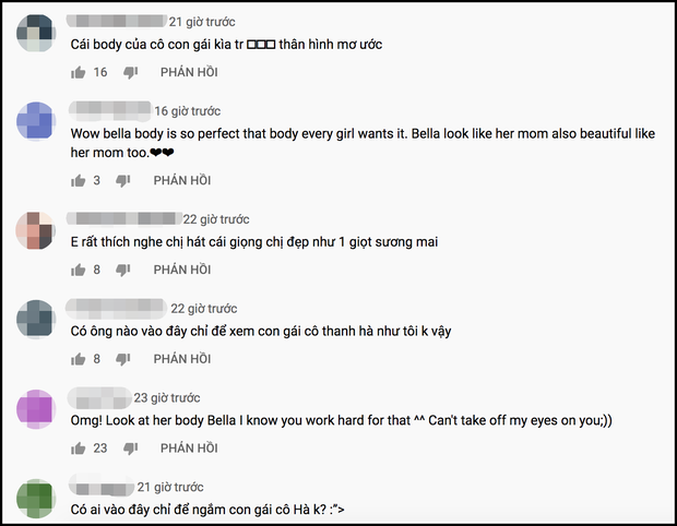 Phía dưới những clip của Thanh Hà, bên cạnh lời khen dành cho nữ ca sĩ là hàng loạt bình luận trầm trồ vì Quỳnh Tiên. Ai ai cũng phải thừa nhận nhan sắc thu hút và body miễn chê của cô bạn này.