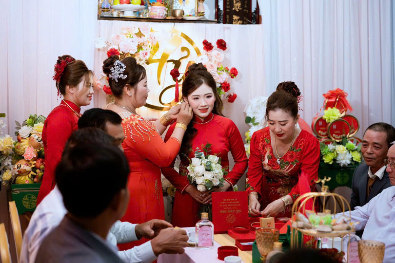 Trước đó, hai bên gia đình qua lại nhiều lần để chọn ngày cưới và bàn cách tổ chức đám cưới. Mọi nghi thức như dạm ngõ, ăn hỏi, đưa – đón dâu,... được thực hiện đầy đủ như mọi đám cưới truyền thống.