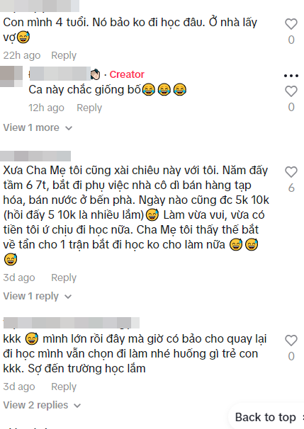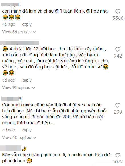 Dưới phần bình luận, mọi người vừa thương vừa buồn cười vì cách độc đáo của bà mẹ này. Đôi khi cũng phải cho con lao động một xíu để biết thế nào là vất vả, để hiểu tại sao lại phải đi học, cố gắng khi đang được bố mẹ nuôi nấng.