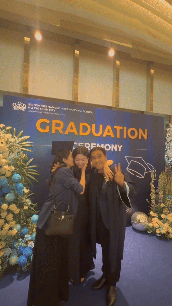 Trong cột mốc đặc biệt của con gái, MC Quyền Linh và doanh nhân Dạ Thảo cũng có mặt để chứng kiến. Ái nữ hào môn gây chú ý khi có hành động trao lại mũ và áo cho bố mẹ để chụp ảnh. Đây cũng là nghi thức được nhiều người thực hiện dạo gần đây để bày tỏ sự biết ơn, tri ân dành cho gia đình trong dịp quan trọng.