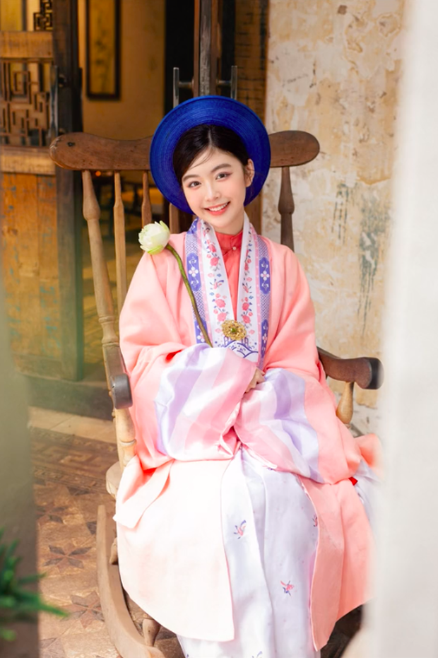 Trong bối cảnh tái hiện lại kiến trúc nhà xưa của Việt Nam, Lọ Lem mặc cổ phục, tay cầm nhành sen trắng, đôi mắt trong veo, nụ cười ngọt ngào nhìn vào ống kính làm ai cũng phải xao xuyến.
