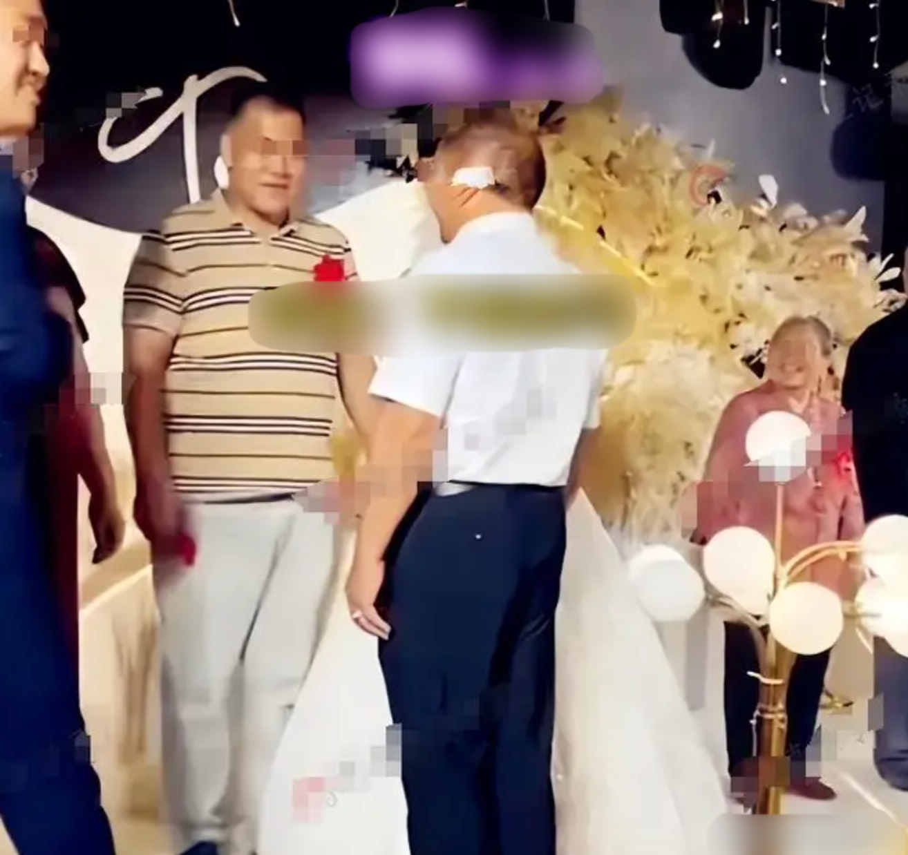 Trong tiệc cưới, bố cô dâu mặc chiếc áo kẻ sọc màu vàng, dắt tay cô dâu tiến về phía chú rể. Khi chuẩn bị trao cô dâu cho chú rể, MC yêu cầu chủ rể phải gọi bố vợ là "bố". Sau đó, chú rể cũng không ngần ngại gọi bố với giọng điệu rất to.