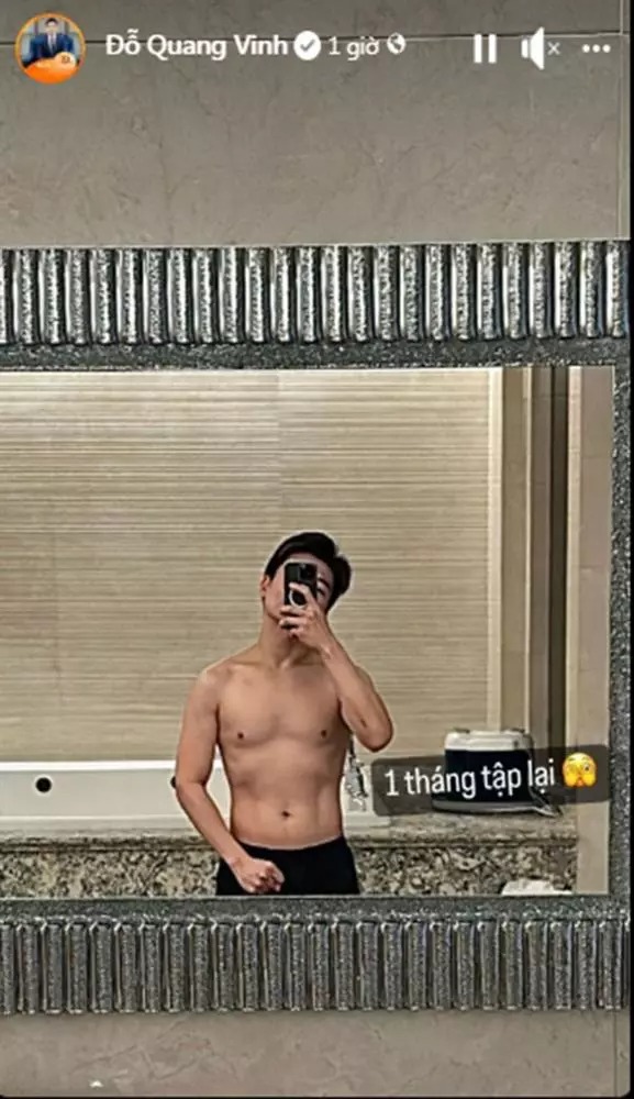 Ở bức hình cho thấy, ông bố 2 con sở hữu cơ thể khá săn chắc. Trước đó, khi có một người bạn thắc mắc dạo này Quang Vinh trông có vẻ gầy, anh tiết lộ đang đi tập để siết cơ. Dân mạng liên tục xuýt xoa trước ngoại hình của con trai cả nhà bầu Hiển.