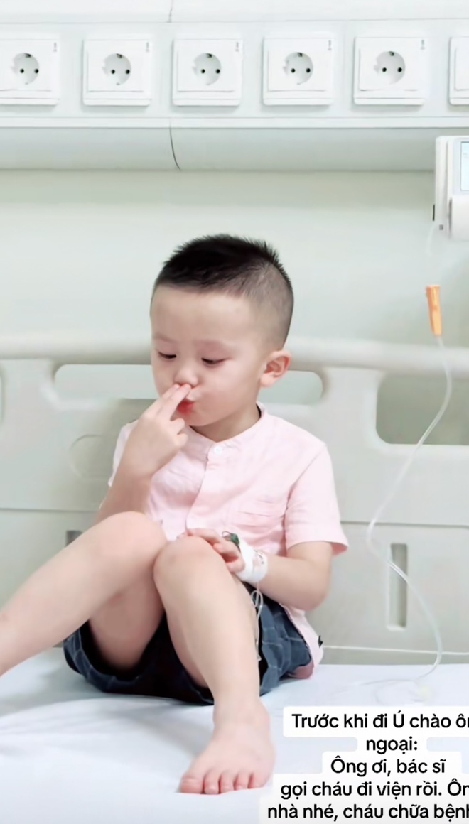 Mới đây, trên trang cá nhân, Duy Mạnh bất ngờ đăng tải clip bé Ú phải nhập viện gấp với chia sẻ: "Trước khi đi Ú chào ông ngoại: Ông ơi, bác sĩ gọi cháu đi viện rồi. Ông ở nhà nhé, cháu chữa bệnh mấy hôm cháu về". Trông Ú rất ngoan, ngồi im khi đang phải truyền nước. Khuôn mặt ngơ ngác, đáng yêu khiến ai cũng thương.