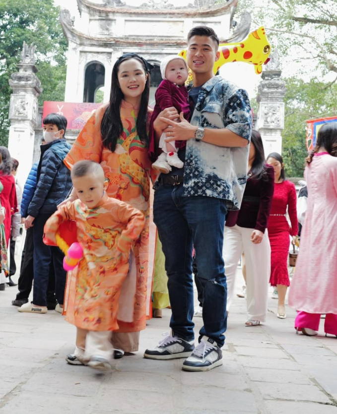 Trong khi đó, hậu vệ quê Đông Anh (Hà Nội) những năm vừa qua luôn là trụ cột của CLB bóng đá Hà Nội và đội tuyển quốc gia Việt Nam. Chồng cầu thủ thì tài giỏi, bản lĩnh trên sân. Còn vợ thì xinh đẹp, kinh doanh giỏi giang. Dân tình khen ngợi đây đúng là cặp đôi đẹp của làng bóng Việt.