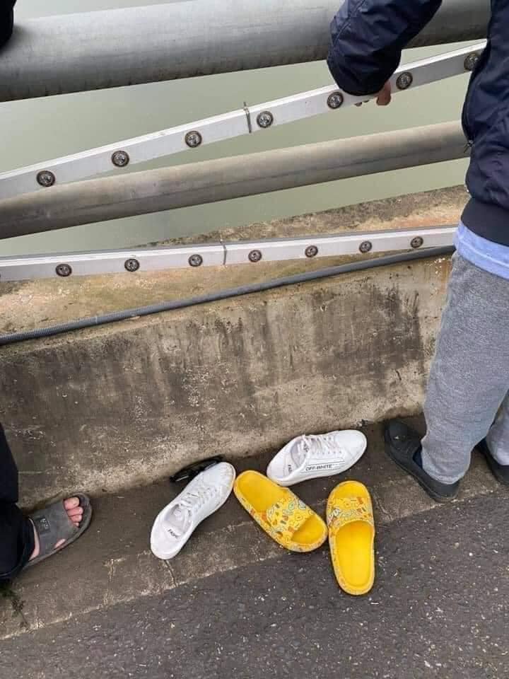 Cách đây ít giờ, dân mạng rần rần chia sẻ hình ảnh ghi lại cảnh một cặp đôi tự tử bất thành. Cụ thể, người ta chụp được ảnh của 2 đôi dép được để trên cầu. Còn chủ nhân của chúng thì được cho là đã lao xuống dòng nước rồi.