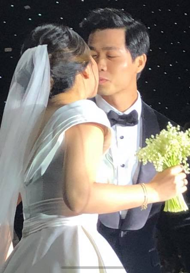 Trên Facebook cá nhân, trợ lý ngôn ngữ đội tuyển Việt Nam Lê Huy Khoa chia sẻ bức ảnh đắt giá ghi lại khoảnh khắc Công Phượng khoá môi cô dâu ngọt ngào trước sự chứng kiến của hàng trăm quan khách. Đây là lần đầu tiên khoảnh khắc riêng tư thân mật thế này của cặp đôi được tiết lộ.
