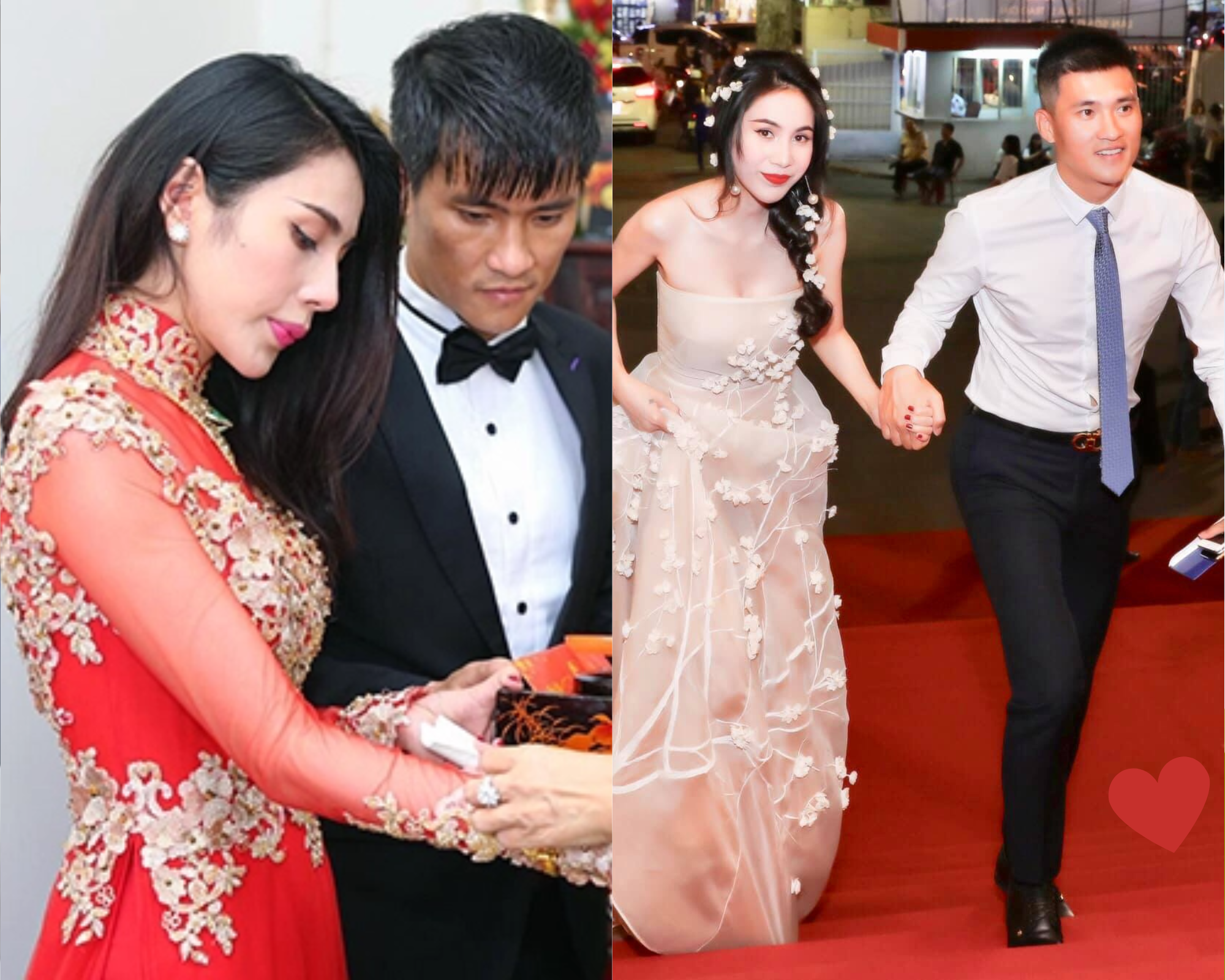 Nhắc đến cặp cầu thủ - ca sĩ nổi như cồn làng bóng đá Việt, không thể bỏ qua Công Vinh và Thuỷ Tiên. Gắn bó từ năm 2008, cả hai từng gặp không ít lời bàn ra tán vào vì sự nghiệp và hình ảnh đối lập: một người là tiền đạo số 1 của bóng đá Việt, người còn lại là nữ ca sĩ gợi cảm, cá tính. Bất chấp mọi thị phi, Công Vinh - Thuỷ Tiên kết hôn vào năm 2014 và chào đón cô con gái Bánh Gạo đáng yêu.