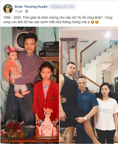 Bài đăng của Huyền Thương sau ít giờ đã nhận về "bão like" của cộng đồng mạng. Trong bức ảnh chụp năm 1996, cô con gái đứng cạnh bố và cậu em trai, em cô khi đó còn đang phải bế ẵm.