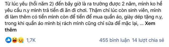 Từ lúc yêu (hồi năm 2) đến bây giờ là ra trường được 2 năm, mình không hề yêu cầu người yêu mình trả tiền đi ăn đi chơi.