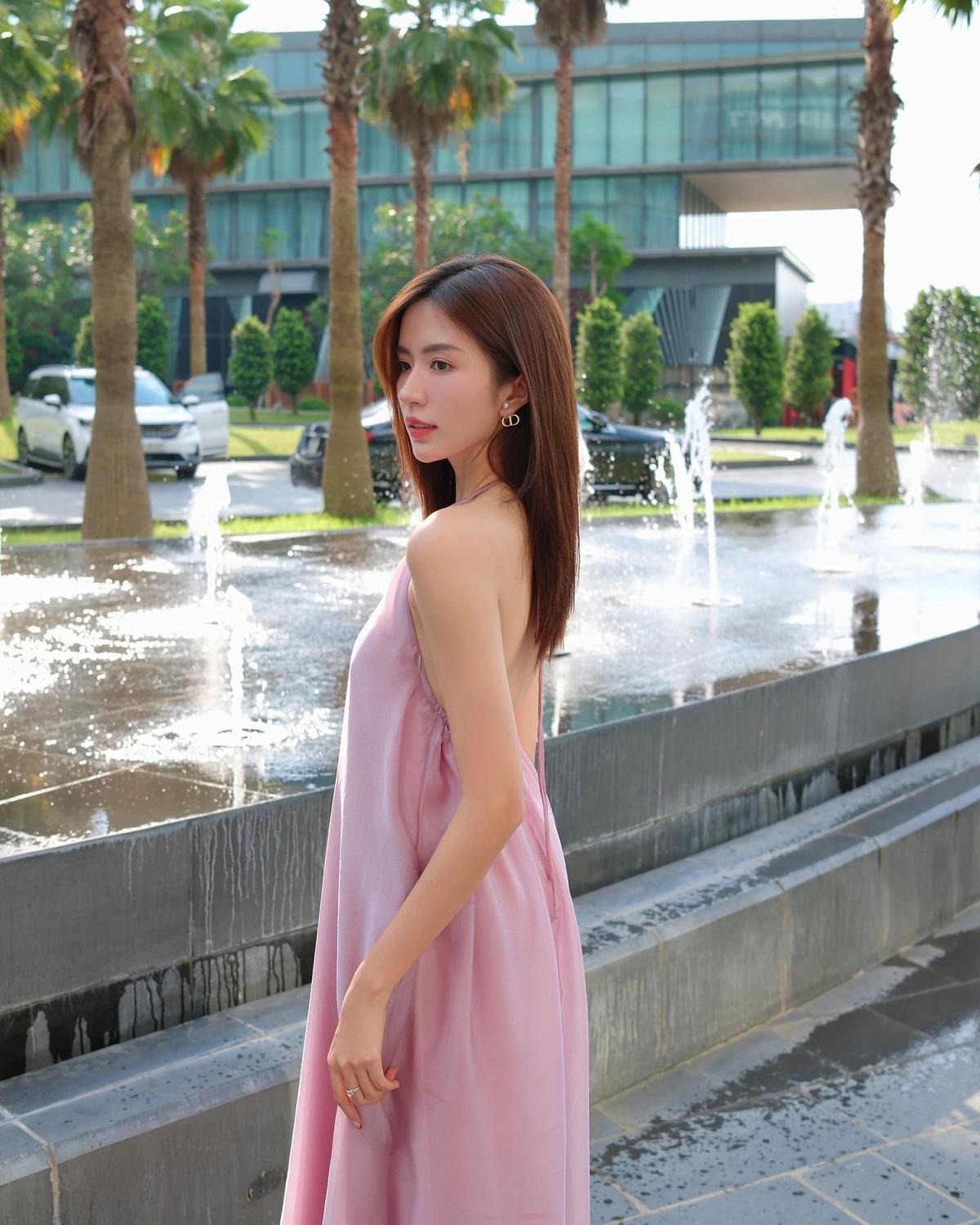 Trong bộ ảnh vừa được chia sẻ, Ngọc Huyền diện đầm dáng suông màu hồng ngọt ngào. Nữ diễn viên thả dáng đẹp mắt trong một không gian sang trọng, khoe khéo lưng trần quyến rũ. “Em gái” Huyền Lizzie gây ấn tượng bởi nụ cười tỏa nắng, gương mặt đẹp với các đường nét hài hòa.