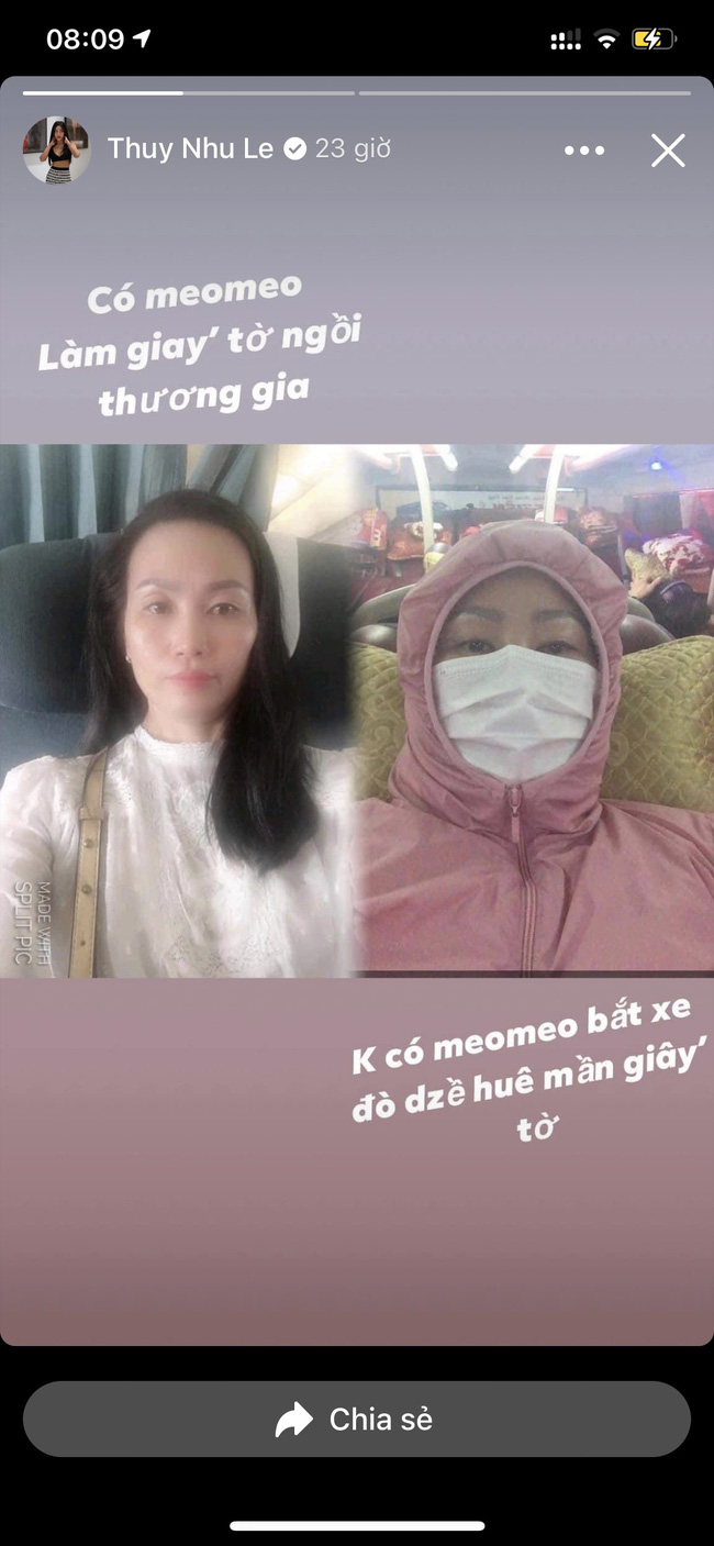 Cùng với tiết lộ số tiền chi tiêu mỗi tuần làm nhức đầu bao người, cô nàng còn chia sẻ hình ảnh chuyện "bà vú" đi với mình và tự đi khác nhau một trời một vực, "có Meo Meo, làm giấy tờ ngồi thương gia. Không có Meo Meo bắt xe đò về quê 'mần' (làm) giấy tờ", cô nói.