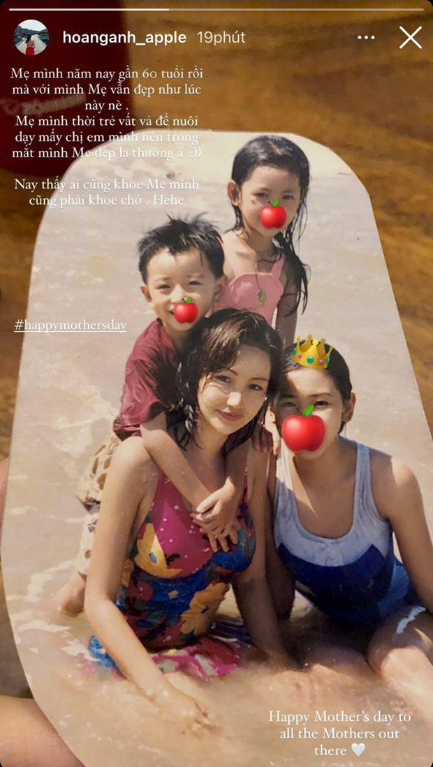Giống như mọi người, Hoàng Anh Apple đã đăng ảnh mẹ trong ngày đặc biệt để chúc mừng. Dù chất lượng ảnh ngày xưa không tốt, cũng chẳng trang điểm hay xài bất cứ filter ảo diệu nào nhưng nhan sắc của "chị" mẹ này cân hết mọi góc độ.