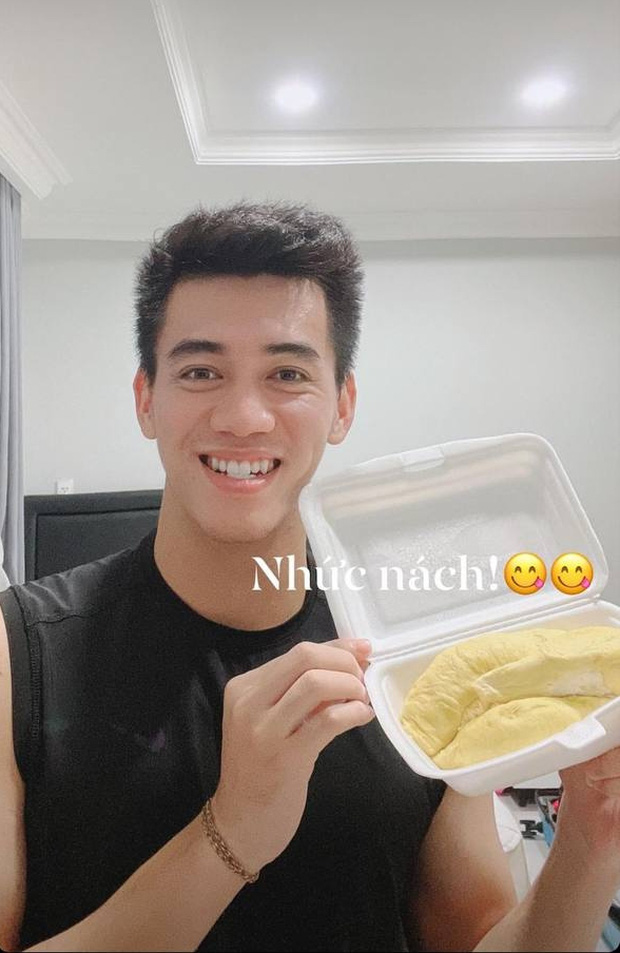 Tiến Linh thì không thấy đăng clip tập thể dục hay skincare nữa, anh chàng đổi qua hệ food blogger khi khoe nguyên... 1 hộp múi sầu riêng (nghĩa đen nha quý dị) cho bà con ngắm ké.