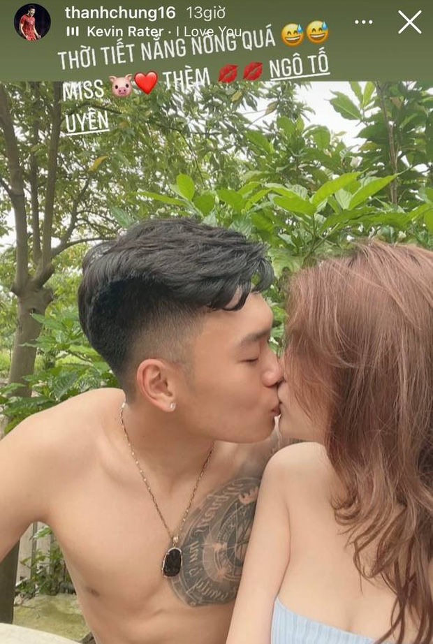 Thành Chung thì khoe nụ hôn nồng thắm với người yêu. Cách ly vài ngày thôi đã mong nhớ thế này rồi!
