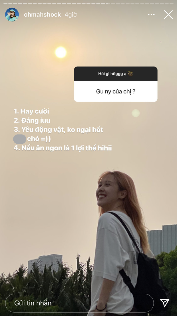 Đáng chú ý hơn nữa là cũng trong lần hỏi đáp này, Hậu Hoàng còn tiết lộ gu người yêu của mình với những đặc điểm: hay cười, đáng yêu, yêu động vật và nấu ăn ngon là một lợi thế. Đương nhiên fan của couple không bỏ qua cơ hội mà so sánh ngay với Mũi trưởng Long rồi nhỉ?