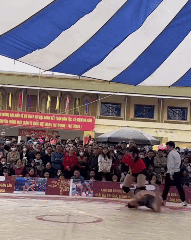 Mới đây trên mạng xã hội lan truyền video đấu vật tại lễ hội đầu năm tại Bắc Ninh. Trong video là vận động viên Đào Hồng Sơn từng giành 2 HCV SEA Games (31 và 32) và lên ngôi vô địch Jiujitsu thế giới 2022. Đối thủ của Hồng Sơn là một cô gái sở hữu nhan sắc xinh đẹp. Màn đối đầu bất ngờ khiến dân mạng thích thú.
