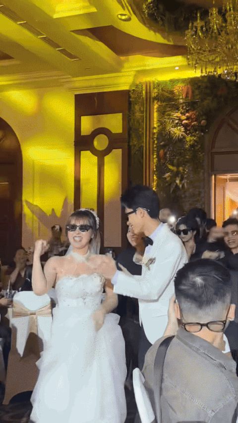 Dẫu vậy, cặp đôi vẫn được khen đáng yêu với loạt khoảnh khắc “quẩy” cực sung, vui vẻ bên bạn bè. Cô dâu và chú rể cùng hội bạn khuấy động đám cưới bằng một điệu nhảy, tất cả đều hòa vào không khí vui vẻ, hạnh phúc trong ngày trọng đại. Điều này khiến nhiều người cho rằng, Ngân Sát Thủ đã gặp đúng người bởi không chỉ ngày càng xinh đẹp mà còn luôn vô tư, thoải mái trong tính cách, làm gì cũng được chồng ủng hộ.