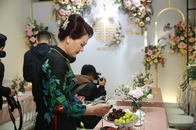10h45: Cặp đôi hoàn thành lễ cúng gia tiên, chuẩn bị di chuyển ra lễ đường, tiếp đón khách mời tới dự bữa tiệc linh đình.