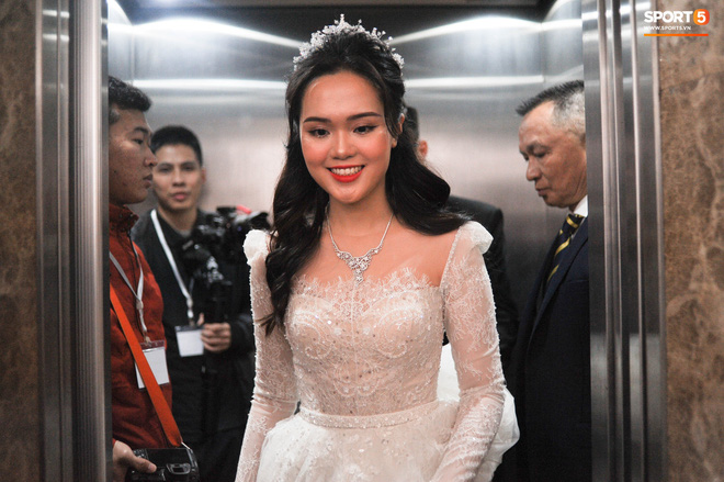 9h23: Cô dâu Quỳnh Anh xuất hiện tươi tắn.