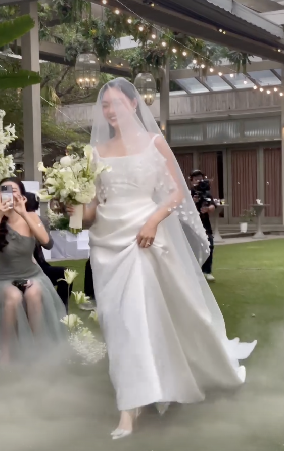 Khi làm lễ, Thu Thảo xuất hiện như một nàng công chúa với chiếc váy cưới dài thướt tha, đội khăn voan, tiến về phía người mình yêu. Trong khoảnh khắc đặc biệt, nhiều người không khỏi xúc động bởi gương mặt rạng rỡ, thể hiện rõ sự hạnh phúc của cô dâu khi chuẩn bị bước sang hành trình mới cùng người bạn đời.