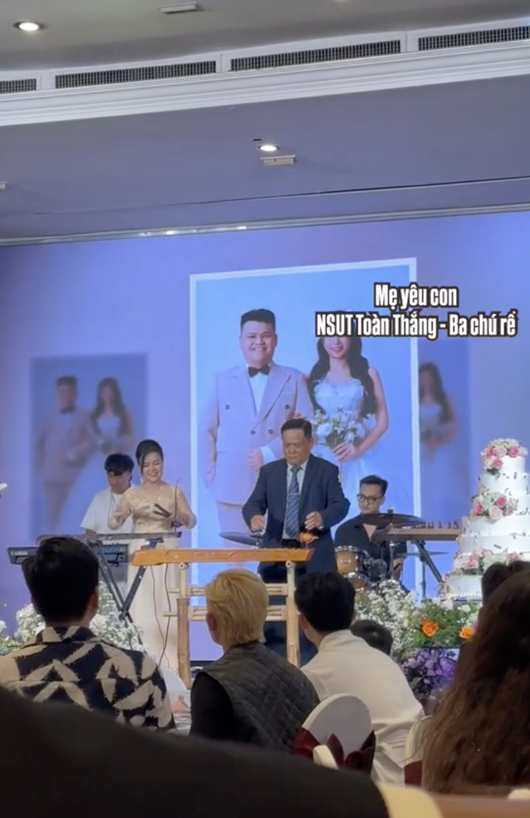 Phía nhà trai, bố của chú rể cũng thể hiện bằng một màn trình diễn độc tấu đàn bầu ca khúc Mẹ Yêu Con. Cộng đồng mạng bày tỏ sự ngỡ ngàng khi nhận ra bố của chú rể chính là NSƯT Toàn Thắng - nghệ sĩ đàn bầu nổi tiếng, sở hữu nhiều tác phẩm dành cho nhạc cụ dân tộc.