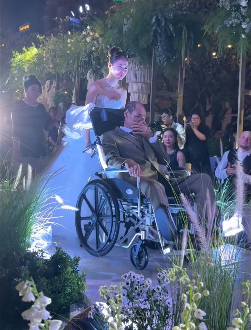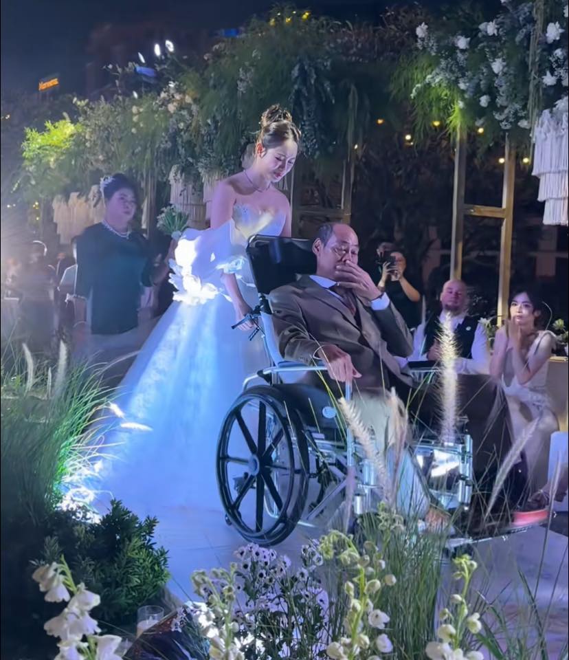 Khoảnh khắc cô dâu đẩy xe lăn đưa bố vào lễ đường gây xúc động mạnh